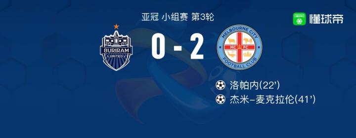 北京时间10月25日亚冠 小组赛 第3轮,武里南联主场对阵墨尔本城。墨尔本城洛帕内破门,杰米-麦克拉伦破门。最终比分0-2。