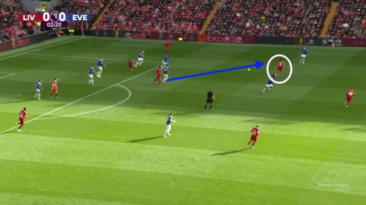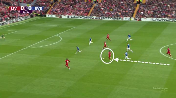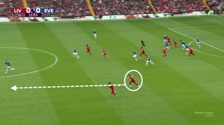 *索博斯洛伊在利物浦由守转攻的情况下开始冲刺。