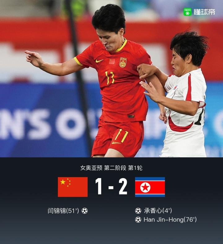 中国女足1-2朝鲜女足遭开门黑居小组第三,闫锦锦替补破门