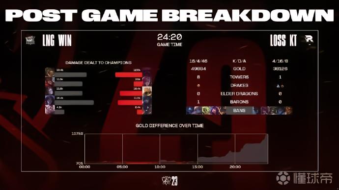 第24分钟,LNG击杀KT两人后推上高地一波结束比赛。