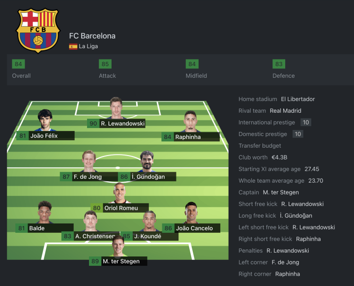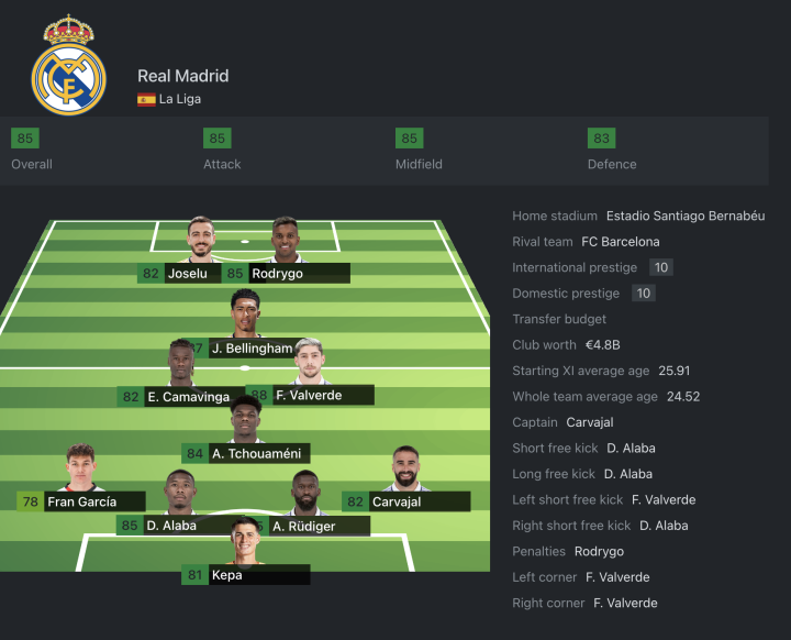 总评方面两队相差无几,是游戏里除曼城以外的欧冠球队第一梯队。