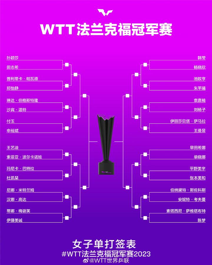 WTT法兰克福冠军赛抽签结果出炉,比赛将于10月29日开拍