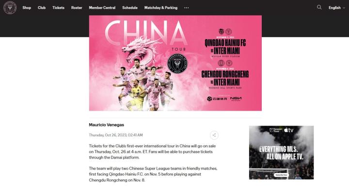 两天后的10月26日,还是迈阿密国际官方宣布,此次梅西中国行的两场比赛将会在海口和成都进行,并且会在当天下午16点进行开票。