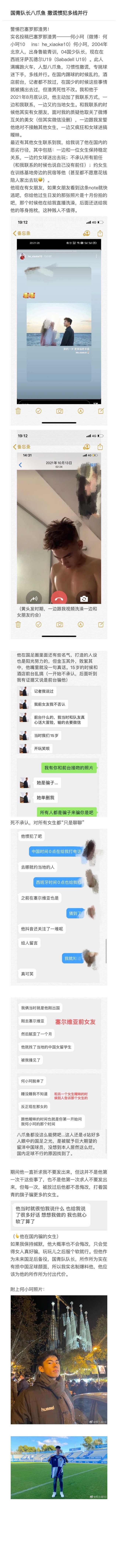 也是在22年1月份,效力于泰山梯队的希望之星何小珂被爆料出大瓜。有博主透露何小珂私生活混乱,称其“八爪鱼、撒谎惯犯、多线并行”。