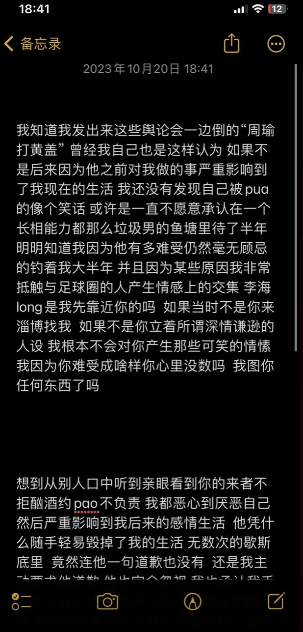 该博主爆料称:“某些球迷别来说我蹭热度,他们有什么热度可蹭?你们一腔热血维护的人在私下说“最讨厌球迷”他们配?纯纯为了bao光让姐妹们避雷!营造着积极向上的运动员人设,酗酒约pao?以欺骗感情为荣?让人家小姑娘连着三个月duo tai三次。点名李海long和陈pu。嗯?你们凭什么?手里大把的料,瓜管够。”