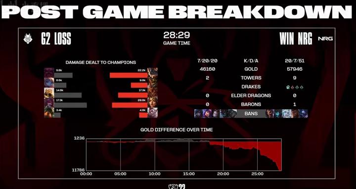 第28分钟,上路爆发团战,Fbi四杀收尾,NRG团灭G2结束比赛。