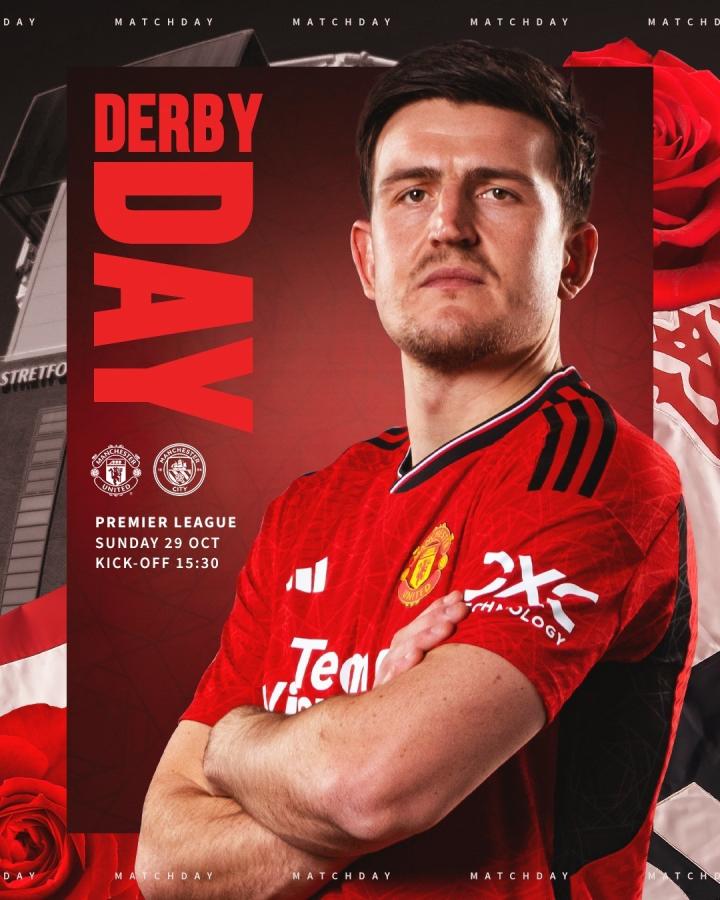冲击4连胜!曼联官方发布曼市德比海报:马奎尔单人出镜