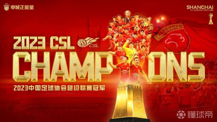 夺得2023年中超冠军后,上海海港官方发布夺冠海报,并写道:“赢得队史第二座火神杯,也为队徽再缀上珍贵的一颗星。”