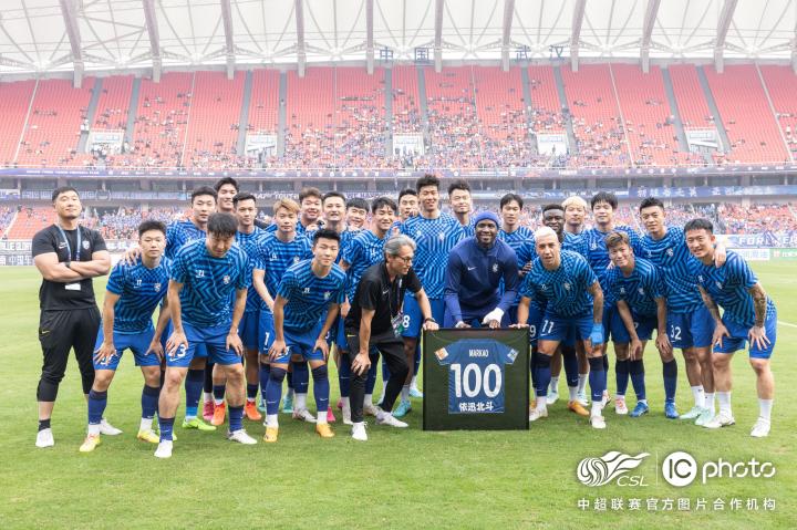 北京时间10月29日15点30分,2023中国足球协会超级联赛第29轮,武汉三镇队坐镇武汉体育中心体育场迎战深圳队。赛前,主教练高畠勉代表俱乐部为马尔康颁发中国职业足球各项赛事100场纪念球衣,以表彰他在球场上所做出的贡献,全体球员也与其合影留念。而在本场比赛中,陶强龙下半场助攻韦世豪破门,三镇队最终以1-0的比分,取得了本赛季中超联赛主场收官战的胜利。