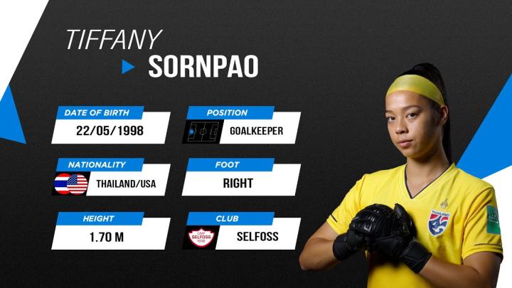 奥运会女足亚洲区预选赛今日表现出色的泰国女足门将蒂法妮(Tiffany Sornpao)是一名出生在美国的泰国裔球员,现效力于冰岛女足联赛塞尔佛斯女足。他的父亲来自泰国,母亲有丹麦血统。蒂法妮身高170cm,在美国肯尼索州立大学度过了大学生涯,也曾代表校队参与NCAA女足一级东南赛区的比赛。在大学期间,她曾帮助球队打出12胜-6平-1负的战绩打入NCAA一级的ASUN杯决赛(前身为泛美运动会),也创下了该大学的校队历史单赛季扑救记录。她与同样来自美国的混血归化米兰达-尼尔德(Miranda Nild)一同于前年首次入选泰国女足,并随队出征了今年的女足世界杯。