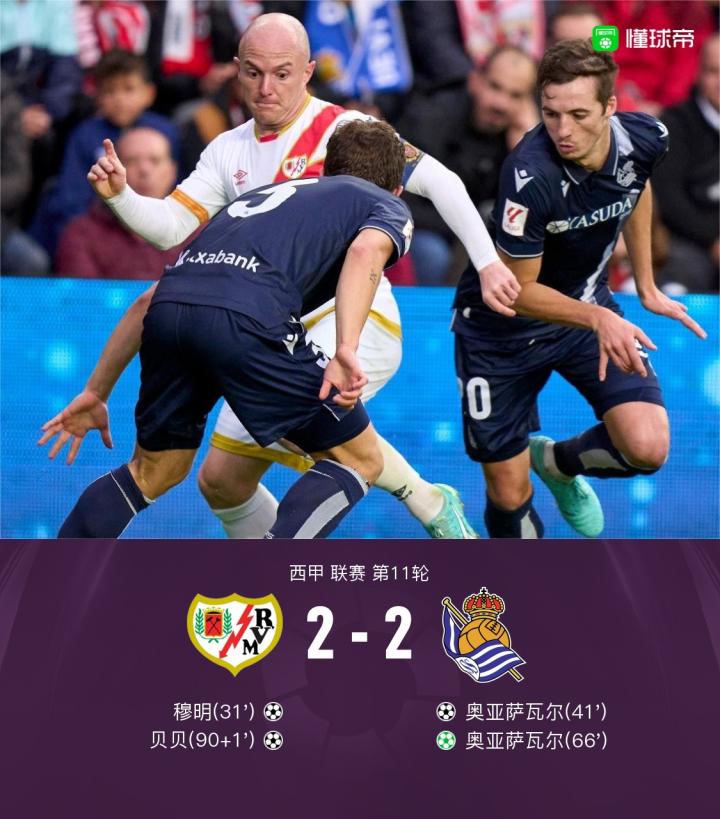 巴列卡诺2-2皇家社会,贝贝绝平,奥亚萨瓦尔梅开二度