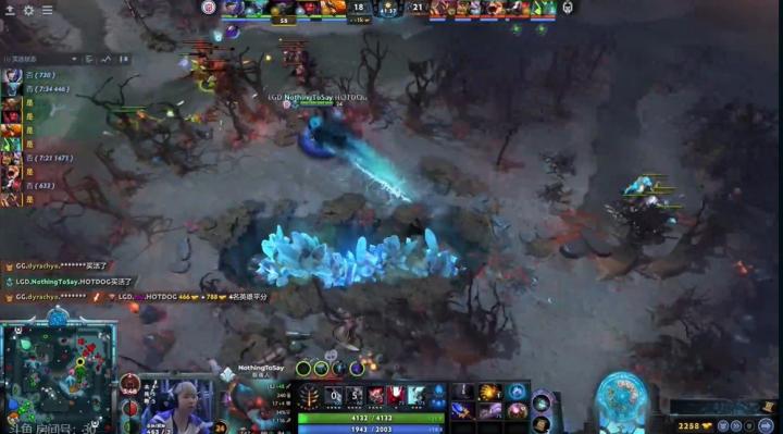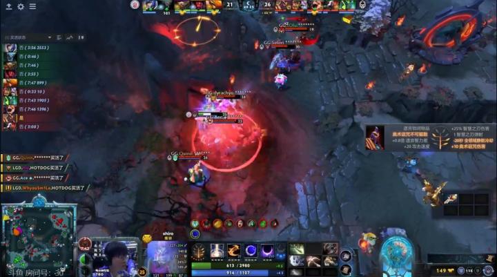 随后GG不断找掉点机会,LGD被迫防守等小娜迦刷钱,第23分钟GG控到一代盾!
