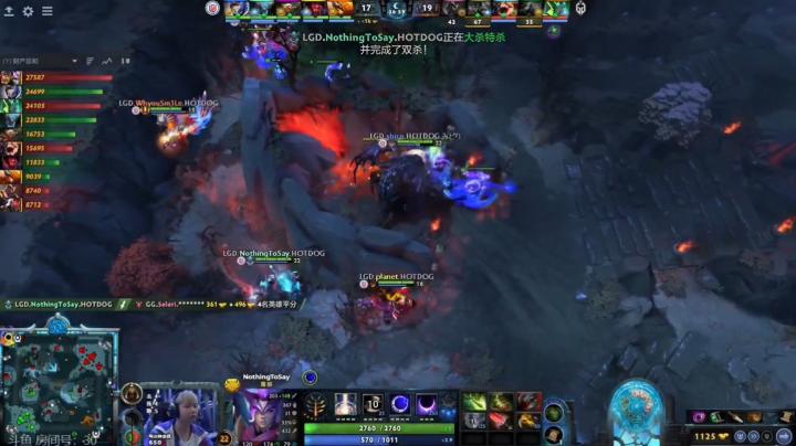 第37分钟,就知道你GG会犯错!!!双方在肉山处视野争夺,niu神人马跳踩两个,配合凤凰和luna输出0换3,LGD带盾!!