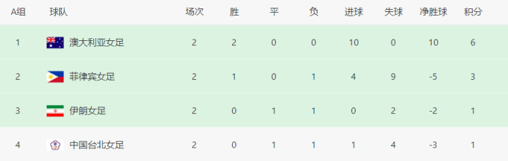 其次,即便中国女足战胜韩国女足,获得B组第2,还要与其他2个小组的第2名比较成绩。其中,A组第2名菲律宾女足将在接下来对阵第3名伊朗女足,由于两队分别积3分、1分,净胜球分别为-5、-2,所以,不管会获胜,应该不会对中国女足构成威胁。