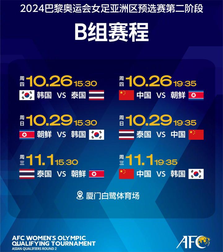 11月1日(星期三)19:35,在亚足联奥运会女足预选赛亚洲区第二阶段B组第3轮较量中,中国女足将继续坐镇厦门白鹭体育场,再次与老对手韩国女足过招。对存在理论出线希望的中国女足而言,这是一场不折不扣的生死对决。