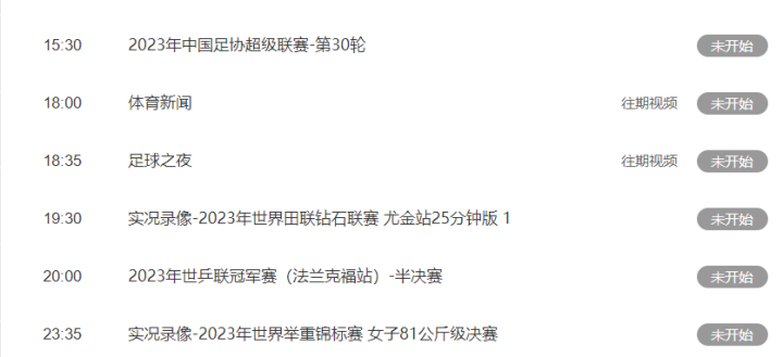 10月30日,央视公布的每周节目单显示,央视体育频道(CCTV5)、体育赛事频道(CCTV5+)都暂未安排中国女足与韩国女足的这场对决。其中,CCTV5安排的节目是:实况录像-2023年世界田联钻石联赛厦门站25分钟版;CCTV5+安排的是2023/2024赛季中国男子篮球职业联赛第五轮(浙江东阳光药-深圳马可波罗)。