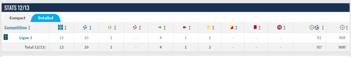 (图)2012-2013 赛季 法乙 欧塞尔 13场10球1助攻