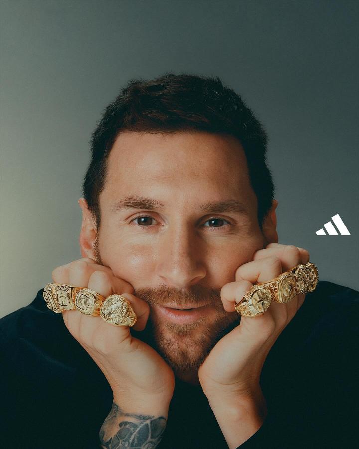 可爱捏,阿迪达斯晒照:梅西戴上8枚定制戒指