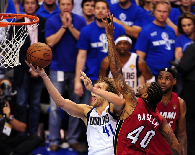 詹姆斯在2010年转投热火,与韦德、波什组成三巨头,一时之间舆论哗然。但是在赛场上,热火却横扫东区,闯入总决赛。对手是热火的老对手,诺维茨基领军的独行侠。前3场独行侠1-2落后,詹姆斯还曾故意咳嗽调侃诺维茨基感冒。但后来诺维茨基率领独行侠以4-2实现逆转,夺得独行侠队史上第一座总冠军。经此一役,詹姆斯认识到自己的不足,开始下决心苦练,终于收获了不一样的自己。