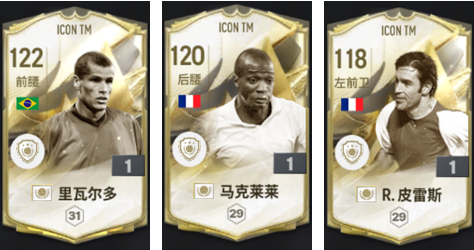 ICON THE Moment赛季此次新增球员有里瓦尔多(能力值122/工资31)、马克莱莱(能力值120/工资29)、皮雷斯(能力值118/工资29)。