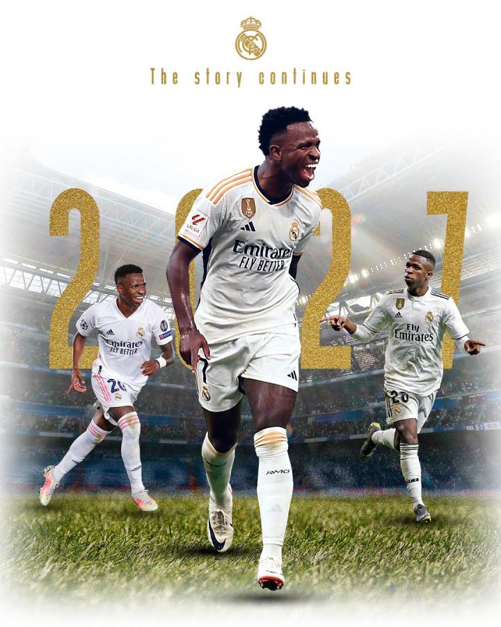 皇家马德里足球俱乐部已经正式和维尼修斯就续约一事达成一致,双方合同延长至2027年6月30日。