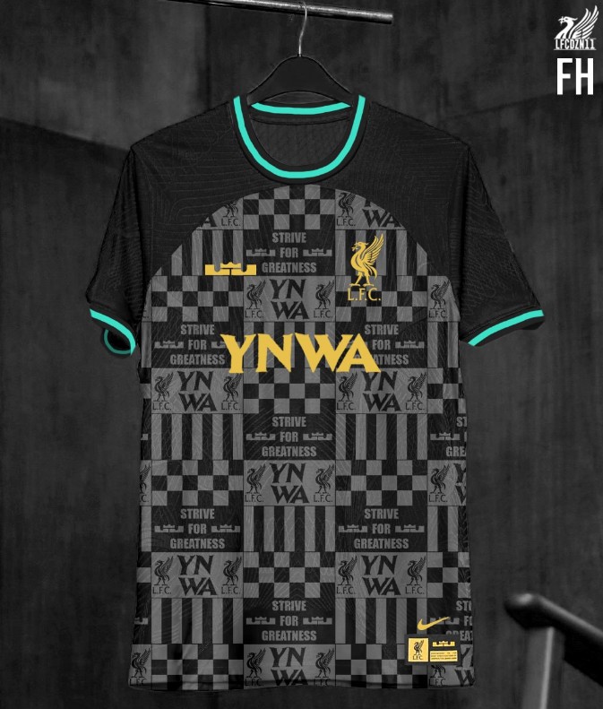 足球装备情报网站footyheadlines近日曝光新赛季利物浦与NBA球星詹姆斯的联名球衣,主打黑灰配色加以青绿色点缀,胸前还有詹姆斯个人专属Logo。