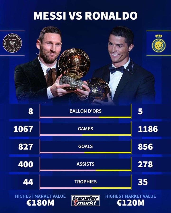 德转数据统计,梅西和C罗各个方面的数据对比,具体...天天向上Football @懂球帝2023-11-02 19:14德转数据统计,梅西和C罗各个方面的数据对比,具体如下。 |梅西vsC罗数据 金球:8-5 场数:1067-1186 进球:827-856 助攻:400-278 冠军:44-35 最高身价:1.8亿欧元-1.2亿欧元展开更多