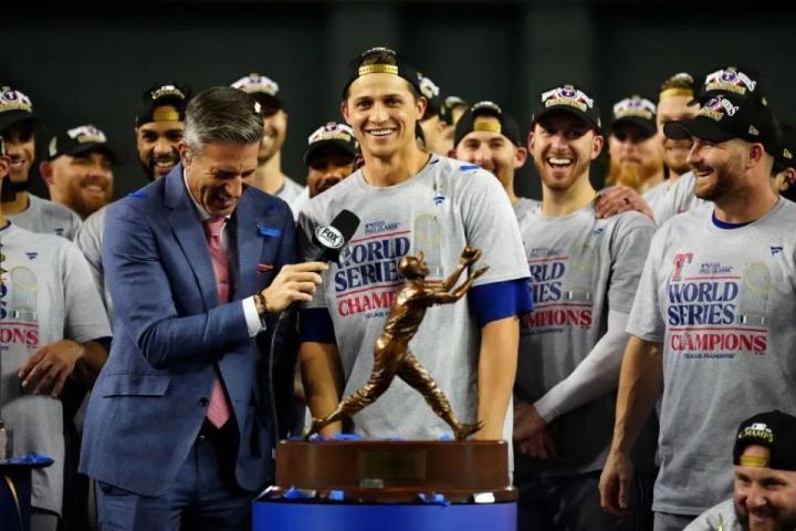 科里-西格(Corey Seager)当选今年世界大赛MVP,此前他在2020赛季效力洛杉矶道奇队时也曾获得该奖,至此他成为1955年该奖项成立以来第四位多次拿下世界大赛MVP的球员。