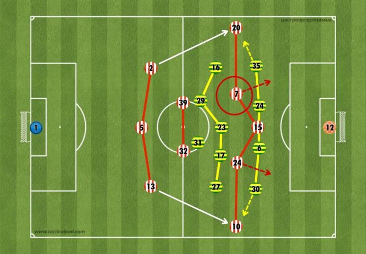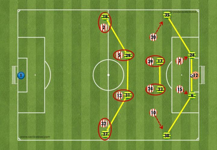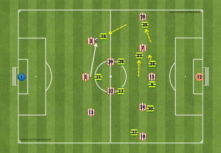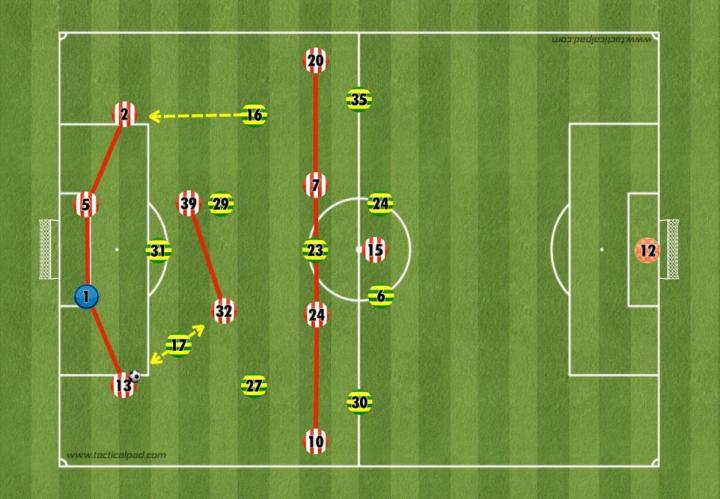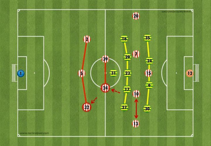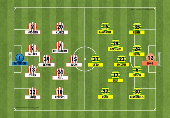 通常情况下,这是一种过于激进的做法,会影响桑德兰控球时的防守稳固性;但诺维奇的消极态度助长了这种做法,使主队在半场结束前创造了多次机会。