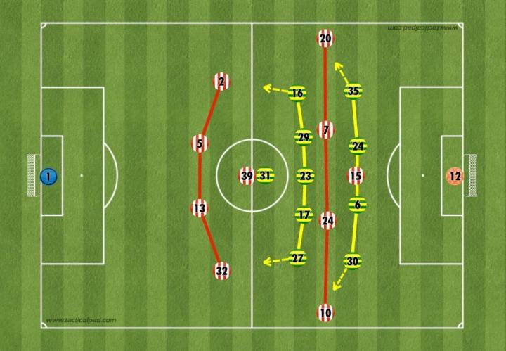 尽管诺维奇对阵型进行了调整,但诺维奇还是在比赛过程中落位成了更加习惯的4-2-4阵型。非常令人出人意料,福肖与黄义助实际都出现在了伪九的位置,而萨拉仍与麦克莱恩搭档双中前卫,在比赛中全队都执行了大幅回撤的布置。