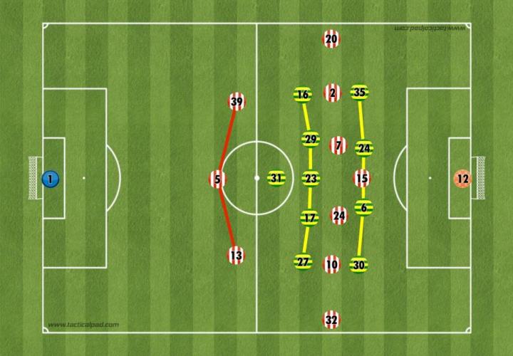 贝灵厄姆与鲁辛作为桑德兰的前场主要逼抢手,负责限制对方后场的出球,而桑德兰的后腰和中前卫丹尼尔和埃克瓦则倾向于限制萨拉和麦克莱恩的发挥。