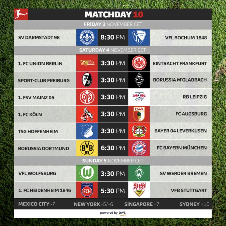 德国国家德比 –一场全球瞩目的足球盛宴,即将作为联赛第十轮的重头戏上演。上赛季联赛最后一轮,拜仁慕尼黑与多特蒙德联袂上演了最惊心动魄的大反转结局。本周六晚间,这对宿敌于伊杜纳信号公园球场的再度对决,势必将引爆更多话题。 但联赛第十轮的看点绝非仅仅如此。周六午后,目前联赛领头羊勒沃库森将客场挑战佩莱格里诺·马塔拉佐挂帅的霍芬海姆;与此同时,RB莱比锡则将客场面对目前新赛季尚未尝到胜绩的负班长美因茨;坐镇主场的柏林联,极度渴望在法兰克福身上终结七连败,哪怕后者本赛季至今仅输一场。 周日,排名第三且刚刚失去联赛最佳射手塞罗·吉拉西的斯图加特希望能在客场对阵海登海姆的比赛中重新找回赢球的感觉。德甲联赛充满着无法预测的悬念感,这个德国国家德比周末势必会让所有人难忘。