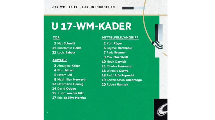 | 德国U17征战印尼U17世界杯大名单