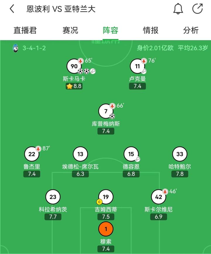 那套阵容主力有萨帕塔、伊利西奇、帕萨利奇、佩西纳、弗鲁勒、戈森斯、吉姆西蒂。所有人在面对逼抢时的第一下摆脱和快速出球,加上这批人身体压迫强,很多185+的身高。超强的身体素质,基本上一场比赛能冲60分钟以上。三脚配合到禁区线,可以打一整场。这个打法在意甲可以横躺。那么多年轻球员,打这种快打旋风最实用。