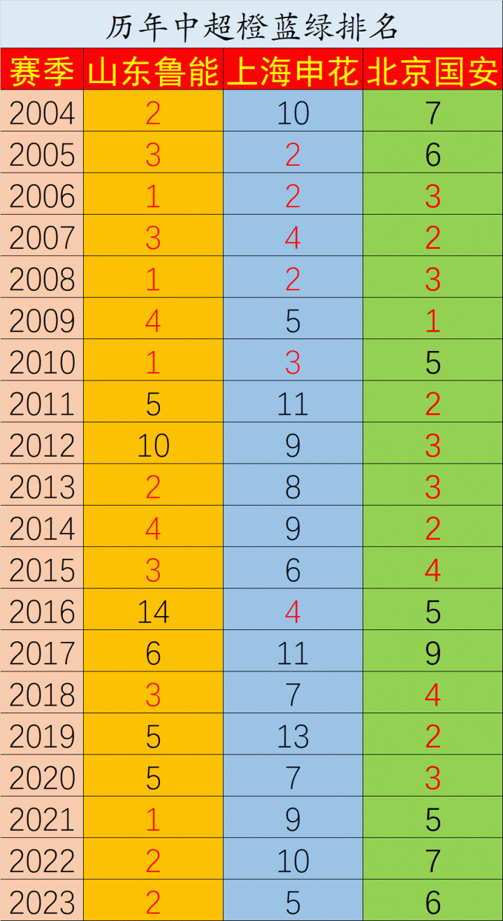 上海申花历年中超排名:久事元年迎来近7年最高排名,近13年只有1次进入前四