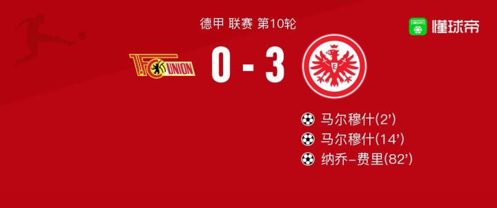 柏林联合vs法兰克福球员评分:马尔穆什8.1分,霍勒巴赫6.0分