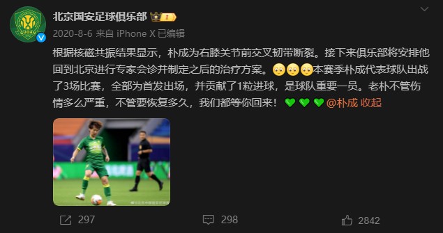 前康复师谈朴成退役:如果膝盖韧带没大伤,生涯可再延长几年德鲁飞鱼 @懂球帝2023-11-05 22:57前北医三院运动医学科物理治疗师、运动康复师黄涛发文谈到朴成退役,他表示如果不是之前几次膝盖韧带的伤势,朴成职业生涯会再延长几年。图源微博用户@掰腿老黄黄涛表示:朴成的第一次内侧副韧带撕裂,第二次前交叉韧带重建,第三次前叉重建我都经手过,如果没有这几次大的伤病可能职业生涯会再延长几年,未来祝好运!展开更多