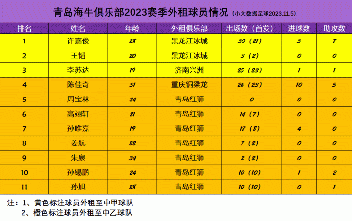 青岛海牛足球俱乐部2023赛季外租球员情况总结(...爱聊球的小文 @懂球帝2023-11-06 12:04青岛海牛足球俱乐部2023赛季外租球员情况总结(截至2023赛季中甲和中乙联赛结束) 2023赛季,青岛海牛一共有11名球员被外租到其他职业队。其中,3人被租借至中甲联赛,8人被租借至中乙联赛。在租借到中乙联赛的8人中,有7名球员被租借至孙新波指导执教的青岛红狮队。展开更多