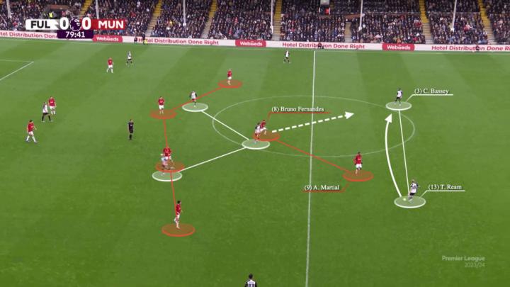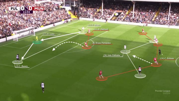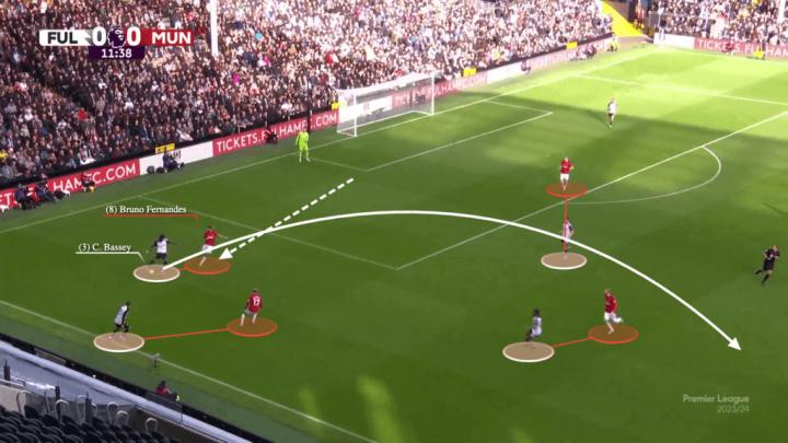 富勒姆主教练马尔科·席尔瓦赞赏曼联的战术布置,并在中场休息时做了相应调整,更好地保护二点球,通过转换进攻创造得分机会。下面来看下半场的一个例子。