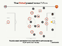 富勒姆本场比赛共计尝试18次射门,18次这一数据是他们今年在英超赛场的单场第三高——前两名是今年四月客战埃弗顿时的21次和上个月迎战谢菲联时的20次。席尔瓦让伊沃比和佩雷拉出任8号位,让帕利尼亚踢防守型中场,这个中场组合的踢法就是各个对手压制曼联的法宝。