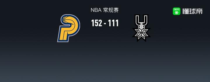 第四节步行者谢泼德拿下7分,马刺马穆凯拉什维利拿下5分,最终步行者152-111战胜马刺