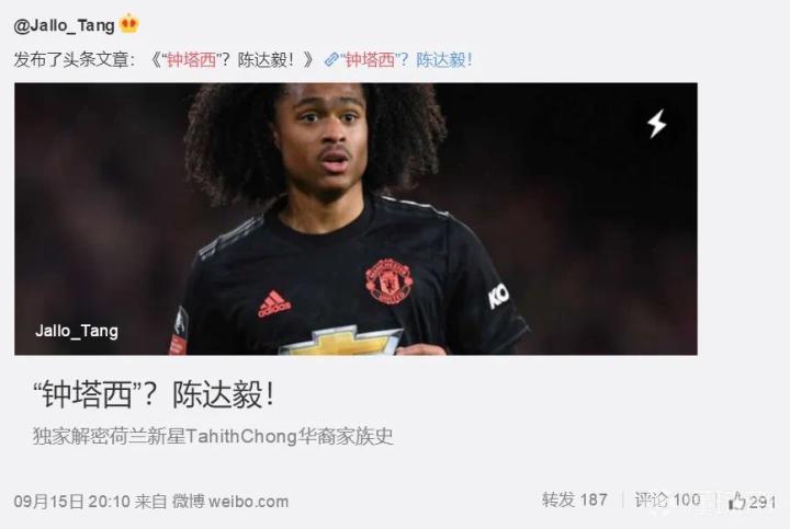 【卢顿华裔球员钟塔西中文名叫陈达毅!这位曼联旧将已不具备归化条件】 根据国内体育博主@Jallo_Tang的消息, 经过考证,曼联旧将、现效力于卢顿的钟塔西的中文名字应为陈达毅。 关于钟塔西的家族介绍如下:1940年,一艘开往荷属安的列斯的航船离开了被战火摧残中的中国,刚刚年过而立的江门新会人陈有(Chong Yow),凭栏眺望着渐渐消失的海岸,而那里是他此生再未踏上的故乡。 经过数月的航行,船终于到达了荷属安的列斯的岛屿阿鲁巴,陈有随着众人踏上了这片陌生的土地,他并没有在这里过多停留,而是继续前往另外一座海岛——库拉索。 此时的库拉索只有华人200余人,其中九成来自江门恩平、鹤山、台山等地,白手起家的陈有,在威廉斯塔德开起了一家老家风味的中餐厅,生意渐渐有了起色,但平淡的生活往往勾起连绵的乡思,陈有只能默默地拿着父亲陈福和母亲陈氏的照片黯然伤心。 之后,在友人的帮助下,陈有迎娶了一位当地少女为妻,两年后生下了儿子陈国友(Chong Kok Yow),接着是二女Helen、三子Irving、四子陈富秀(Chong Fook Shau)、五子陈英光(Chong Ying Kong)、六子Jeritza。 然而天有不测风云,年仅12岁的长子国友早逝,同年,陈有也随即撒手人世,而此时,陈达毅的外公陈富秀,才仅仅三岁。 此后,陈家在威廉斯塔德继续生活了下去,陈富秀也结婚生女,有了两个女儿Dicla和Izalda。2009年元宵节的前夕,陈富秀也走完了他61岁的人生,此时他的外孙陈达毅(Tahith Chong)才刚刚开始步入费耶诺德青训营的大门。 或许他想不到,这位继承了他姓氏的小伙,会在以后成为欧洲足坛闪耀的新星,也或许可以有一天承载着家族的溯源荣归故里。 PS:虽然中国足坛近年来规划了多名华裔血统球员,但钟塔西不属于国际足联规定的三代以内的华裔,而是属于三代以上的华裔,所以无法对他进行归化或恢复国籍工作。