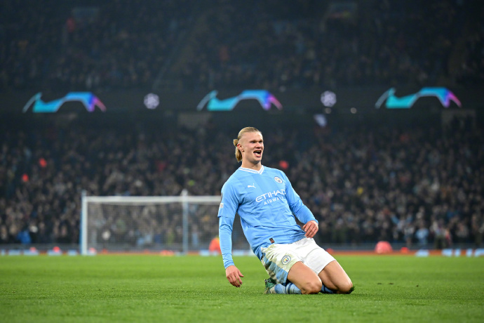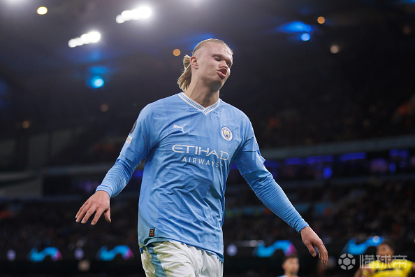 打进第二个进球之后,哈兰德来了一次德罗巴式的滑跪庆祝……