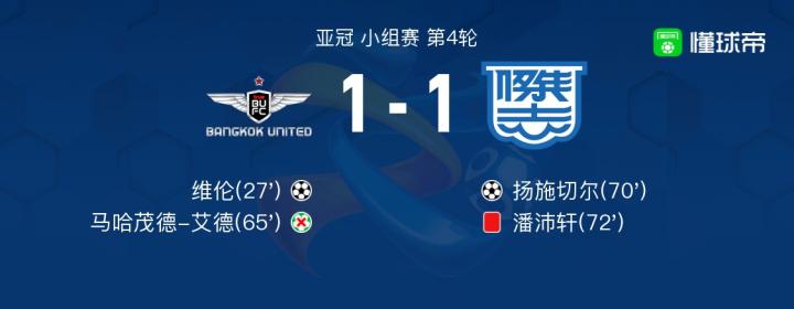 北京时间11月08日亚冠 小组赛 第4轮,曼谷联主场对阵杰志。曼谷联维伦破门。杰志扬施切尔破门。最终比分1-1。