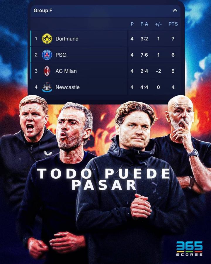 欧冠小组赛F组混战继续……排名第一的多特蒙德和排...FootballNoble @懂球帝2023-11-08 23:35欧冠小组赛F组混战继续…… 排名第一的多特蒙德和排名第四的纽卡斯尔仅仅只有3分之差; 排名第二的巴黎圣日尔曼也仅仅只比第三的AC米兰多一个积分。 在小组赛还剩下两轮的情况下,你认为哪两支球队会最终出线呢?展开更多