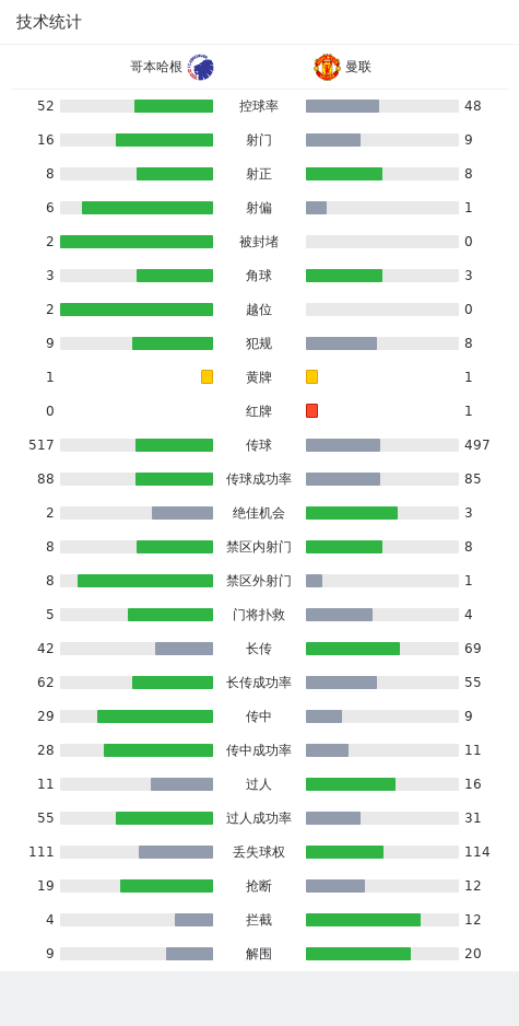 第45+8分钟,马奎尔手球送点,贡萨尔维斯点射扳平比分,哥本哈根2-2