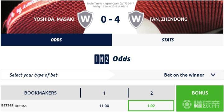 从目前博彩公司开出的赔率看,1.02的胜赔约等于封盘,甚至相当于中国乒乓球队其他国家选手的比赛赔率,没丝毫悬念。