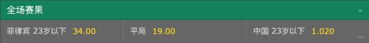 亚青预:中国今日出战菲律宾,取胜赔率仅为1.02