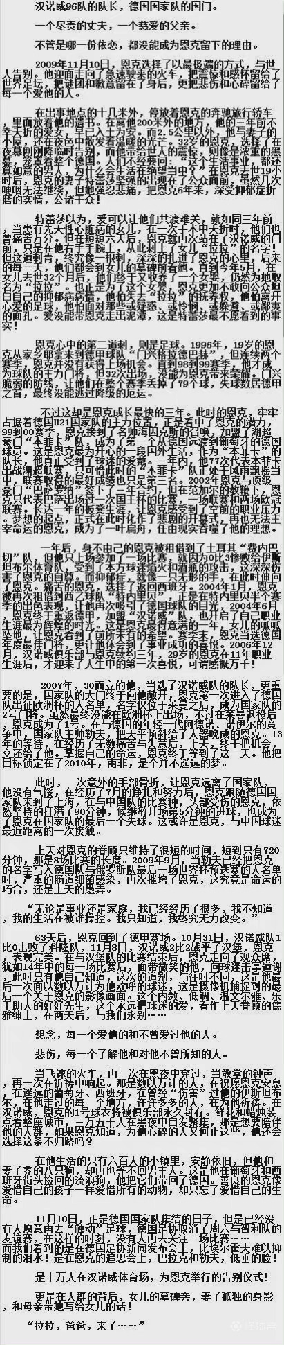 恩克逝世14年:2009年11月10号,德国籍门...巴萨球迷协会 @懂球帝2023-11-10 12:15恩克逝世14年:2009年11月10号,德国籍门将恩克因患有严重抑郁症卧轨自杀。你并非一代偶像与男神,但你却曾牵动了几代球迷的心。在短短两年的红蓝岁月里,仅四次出场未能让我们去感受你的所有。时至今日仍在遗憾和懊恼,倘若当初的你能够在我们这里过的更好一些,能够得到更多的机会和安慰,之后的一切会不会有所不同。今天是你离开的十四年,恩克,在天堂还好吗。[蜡烛]展开更多