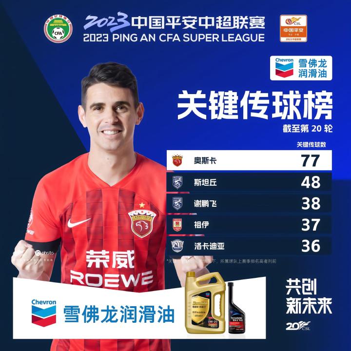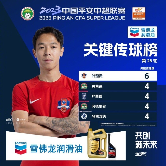 下个赛季,谁会在关键传球榜上名列前茅呢?让我们与中超联赛官方赞助商雪佛龙润滑油一起,期待更多关键先生用关键传球让进攻组织更为流畅润滑,从而迎接更多超燃时刻的到来!